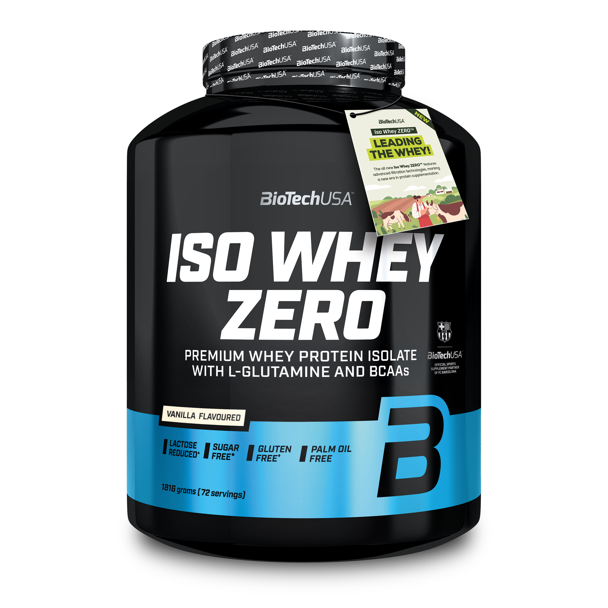 Iso Whey Zero von BioTech ist ein Premium Molkenprotein-Isolat Getränkepulver, mit reduziertem Laktosegehalt, zucker*- und glutenfrei**, mit zugesetzten BCAA und Glutamin Aminosäuren, Zucker und Süßstoff.