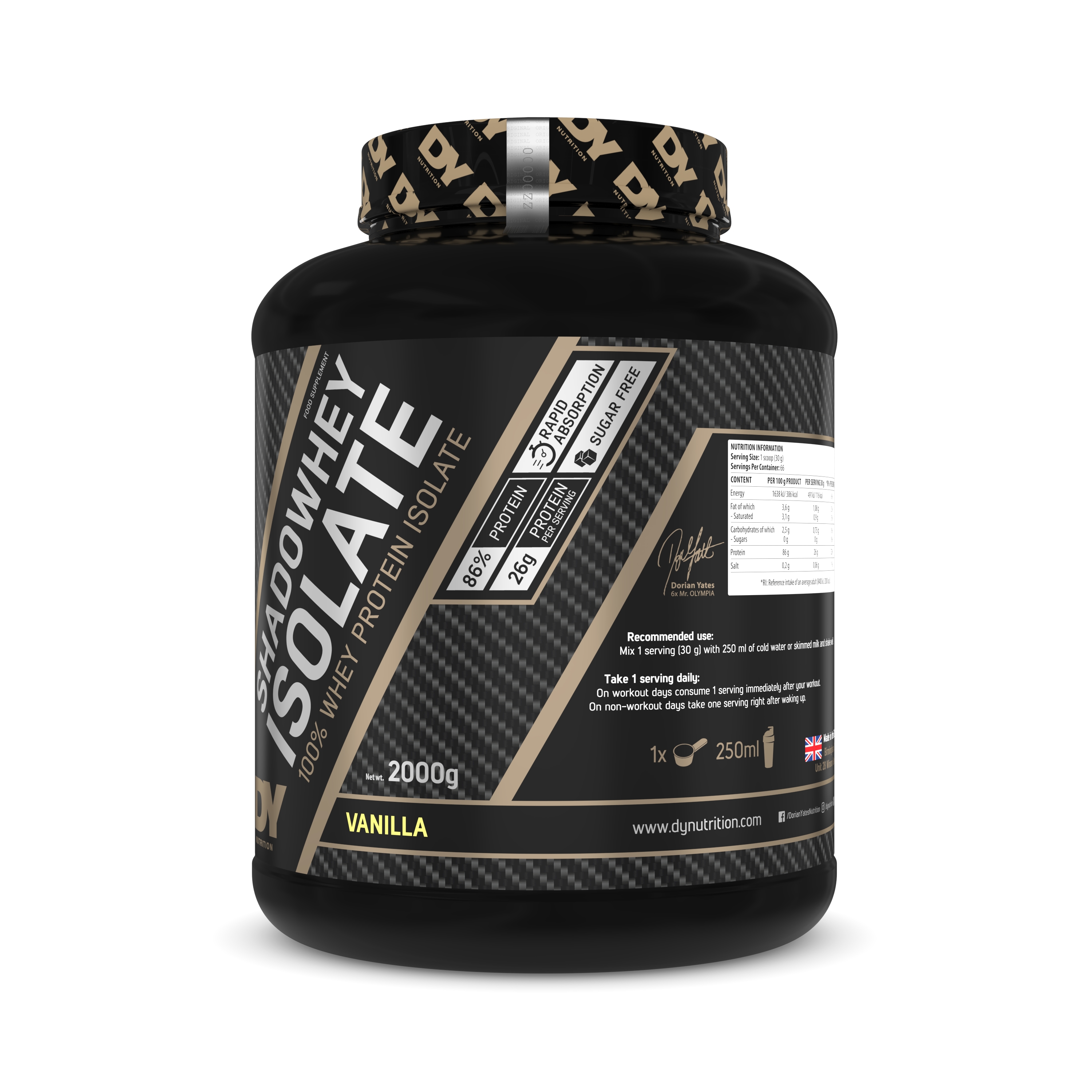 Dorian Yates DY Nutrition SHADOWHEY ISOLATE 100% Whey Protein Isolat 2 kg