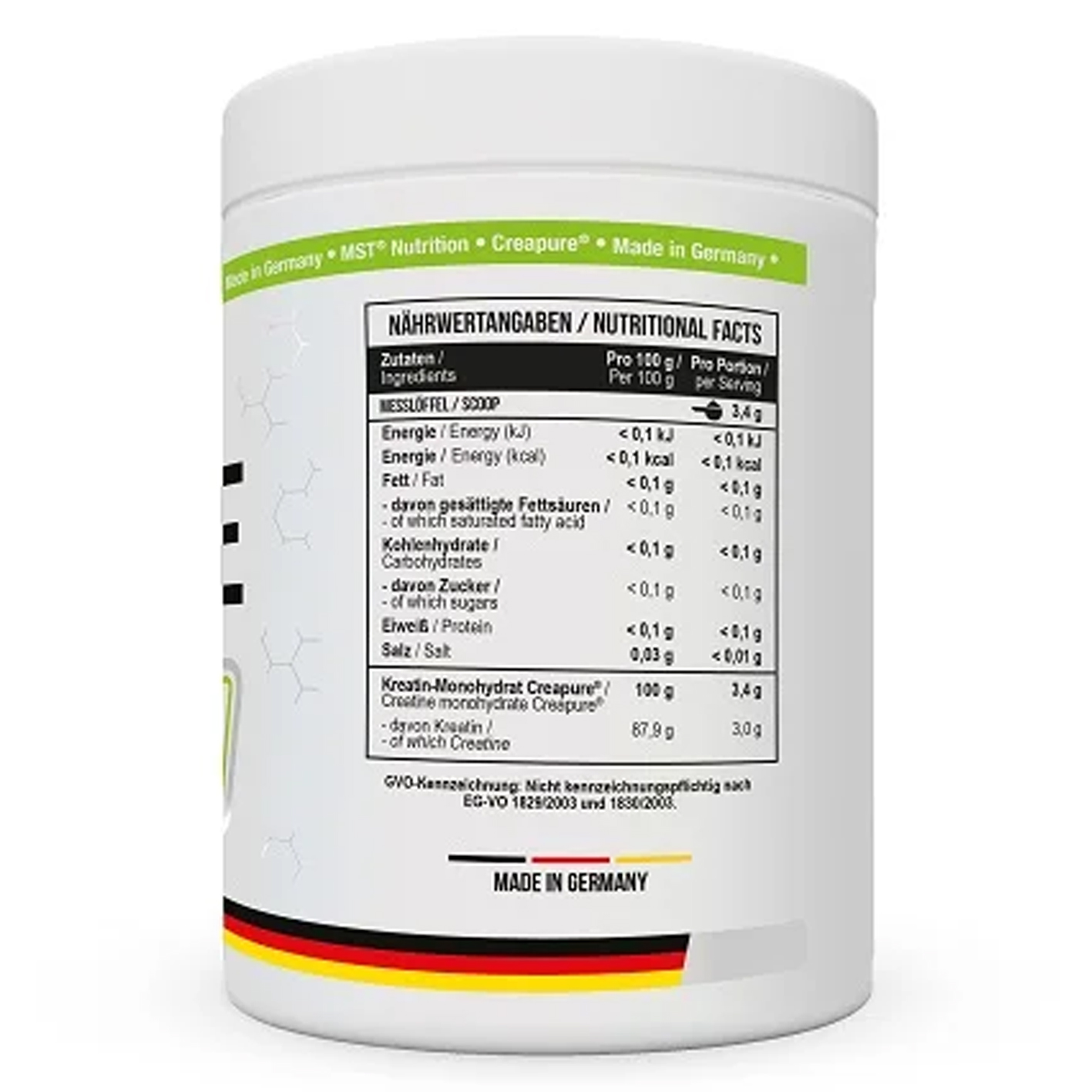 | Kreatin-Monohydrat Creapure® | 100 g | 3,4 g |