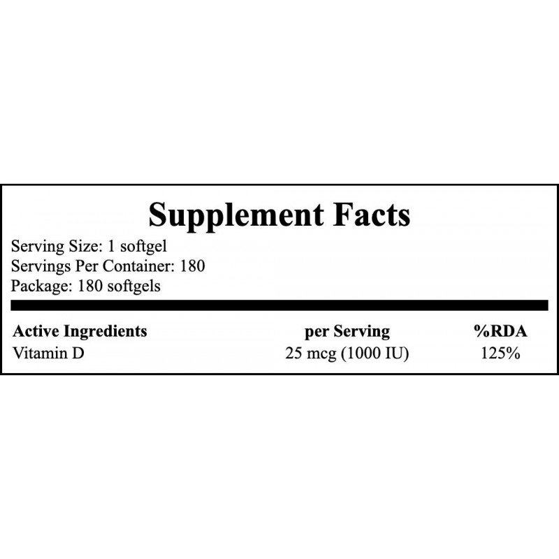 | Inhalt | Inhalt: 180 Kapseln Portionen pro Packung: 180 Inhalt pro Portion 1 Kapsel Vitamin D3 (als Cholecalciferol) (aus Lanolin): 25 mcg (1000 IU) 125%* *Referenzmenge eines durchschnittlichen Erwachsenen (8400 kJ/2000kcal). Zutaten: Natives Olivenöl extra , Softgel-Kapsel (Rindergelatine, Glycerin, Wasser). |